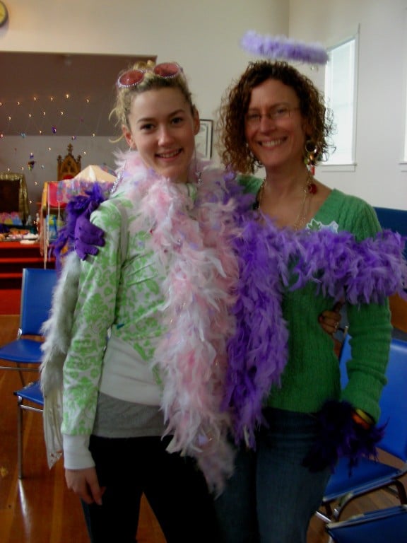 Lauren was 6 years old when Glenda first got cancer and passed away on her 12th birthday (approximately 1 year after the playday). A very special service was held, followed by a true "Goddess Celebration", as Glenda had wished. We circled LOVE around Lauren as we danced and played - the ORBS in the photos show us that the spirits are all around us, and love to play as well! I played the DVD from the Mother/Daughter day, and we were all moved to tears... tears of JOY as we remembered what a magnificent day we had ... and the memories Lauren will always have of her mom and of that very "Magical" day they spent together.